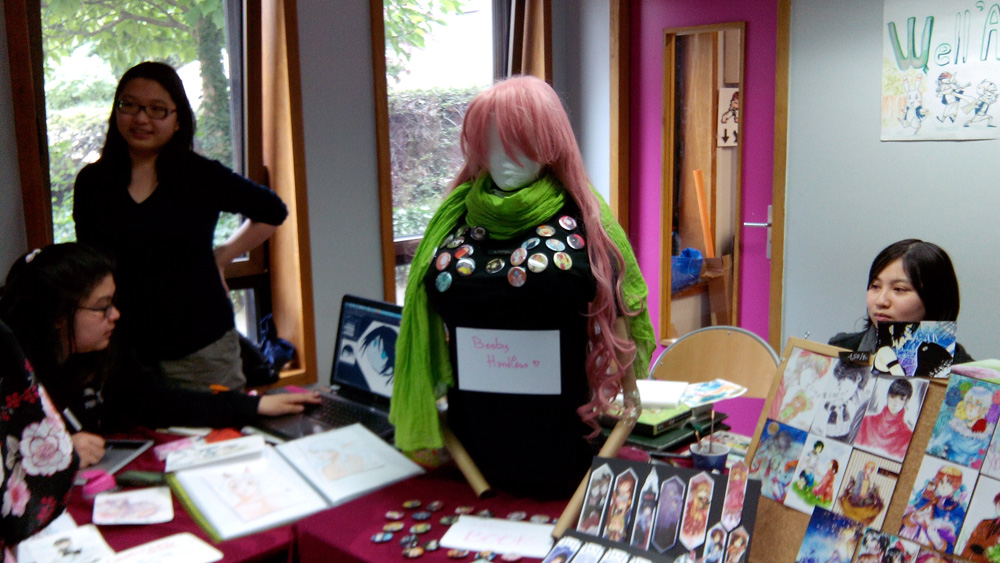 La meilleure et principale partie de cet Epitanime diurnes ! Les salles du sous-sol, loin d’être sombres, étaient bien éclairées avec leurs grandes baies vitrées. Pratique pour créer des groupes de fanzines sans les isoler totalement, limiter les bruits et créer une ambiance intimiste ! Les tailles de salle étaient variables, avec la plus grande tout au fond du couloir comprenant presque 15 stands ! Les fans de créations amateurs étaient aux anges avec tous les styles représentés : pur doujin à la japonaise, steampunk, fanarts, créations originales, saga mp3, bijoux, accessoires, …