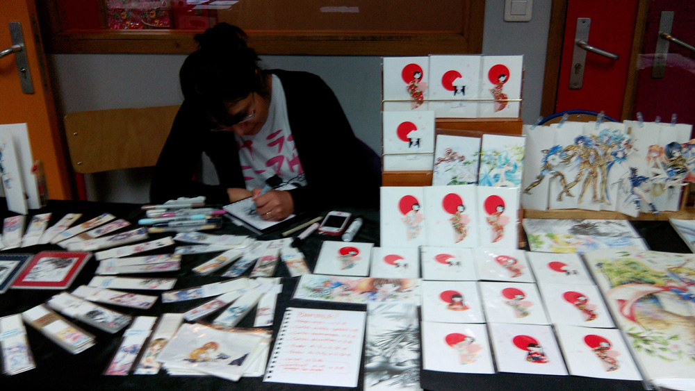 Il y avait peu de monde mais que des habitués de la convention et du fanzinat : l’ambiance était calme mais sympathique et chaleureuse, loin d’être froide. Nous pouvions prendre le temps de parler produits avec les fanzineux ou de papoter avec le staff ! Nous pouvions profiter des quelques activités : du live drawing (Sitouanang en action !), écouter des saga mp3 sur le stand Javras ou jouer à quelques jeux organisés par le staff 🙂